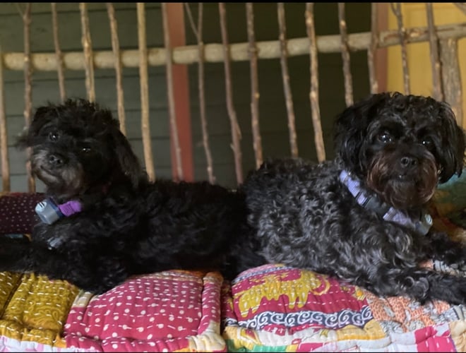 I adopt rescue pups, The mom is Sabrina and the puppy is Sam (Samantha) because my husband loves Bewitched.