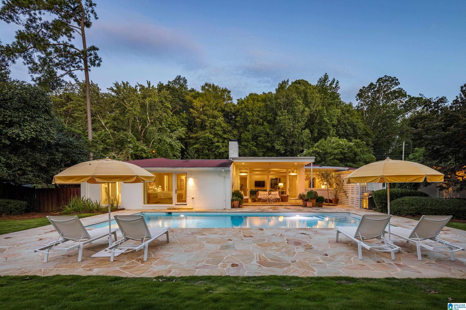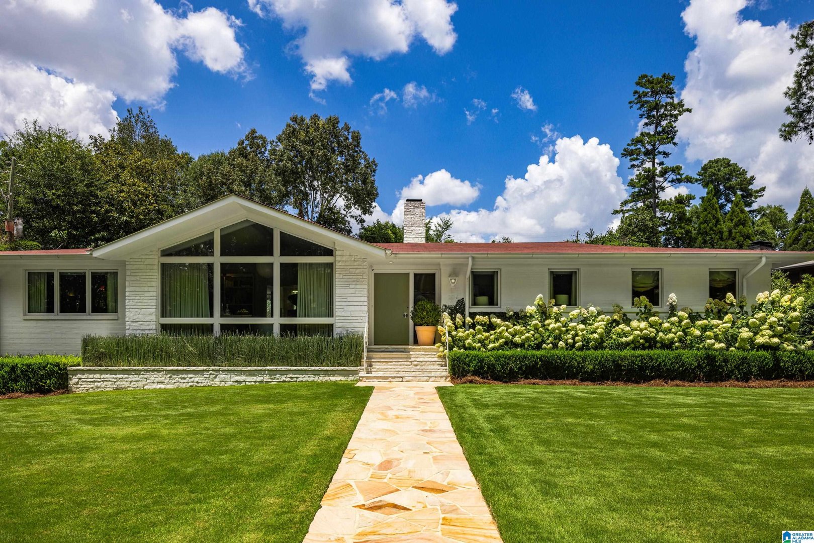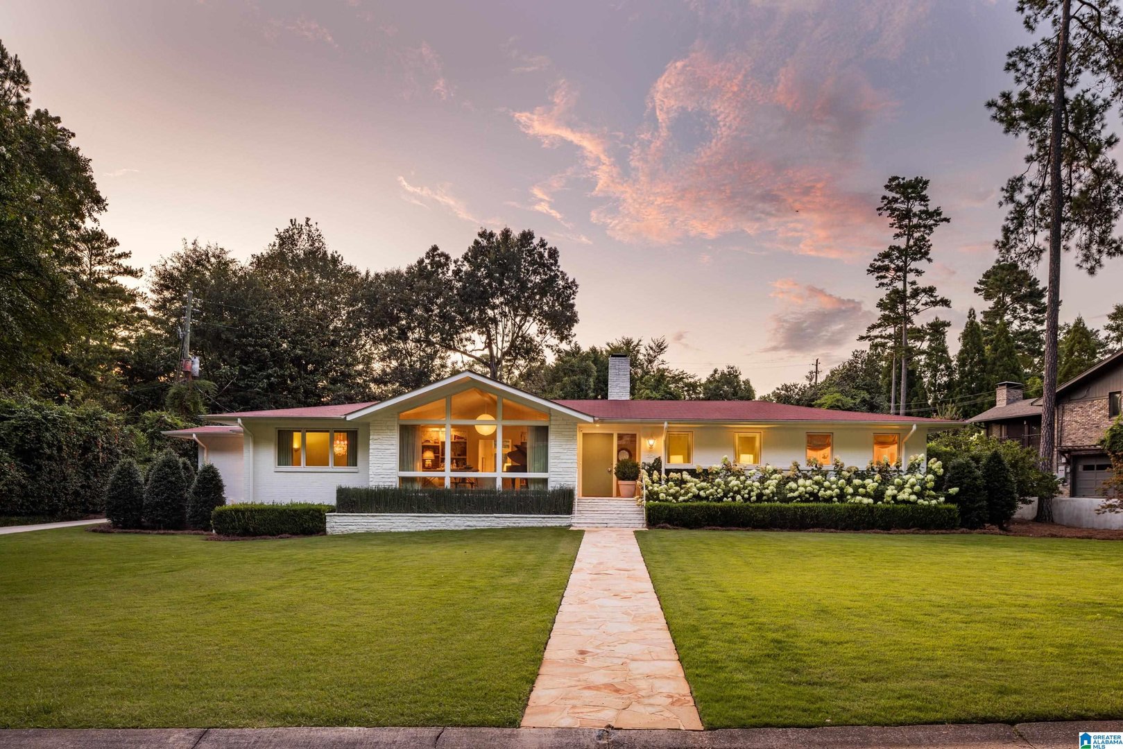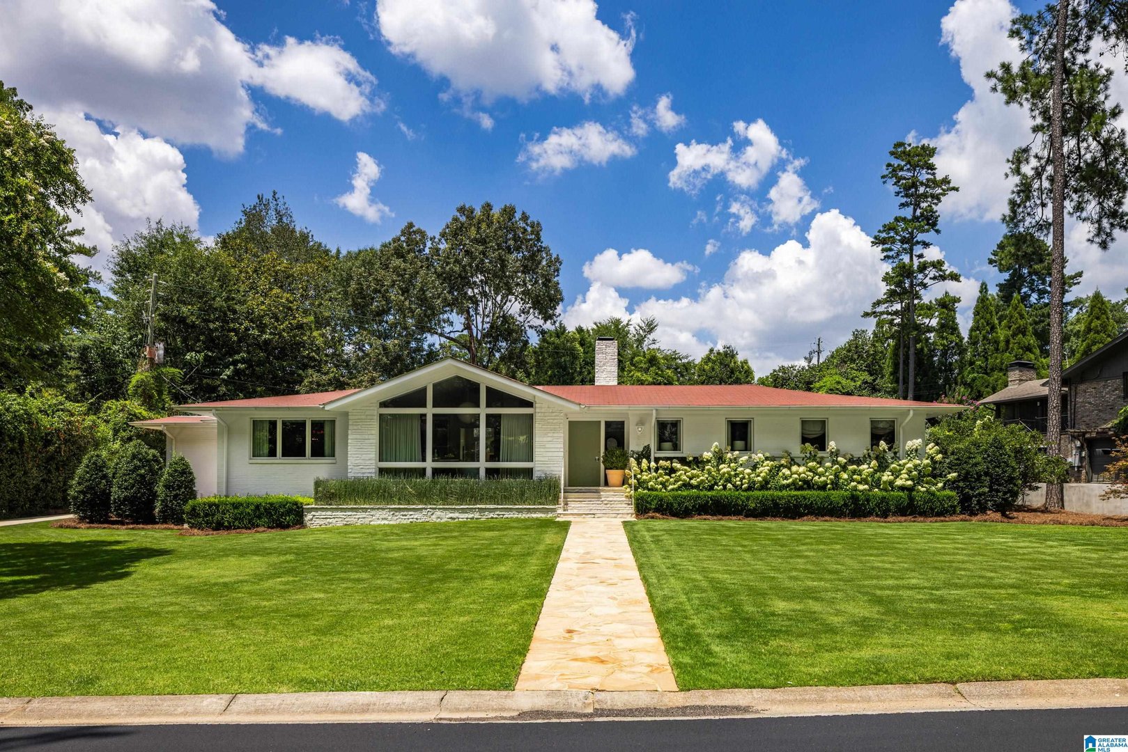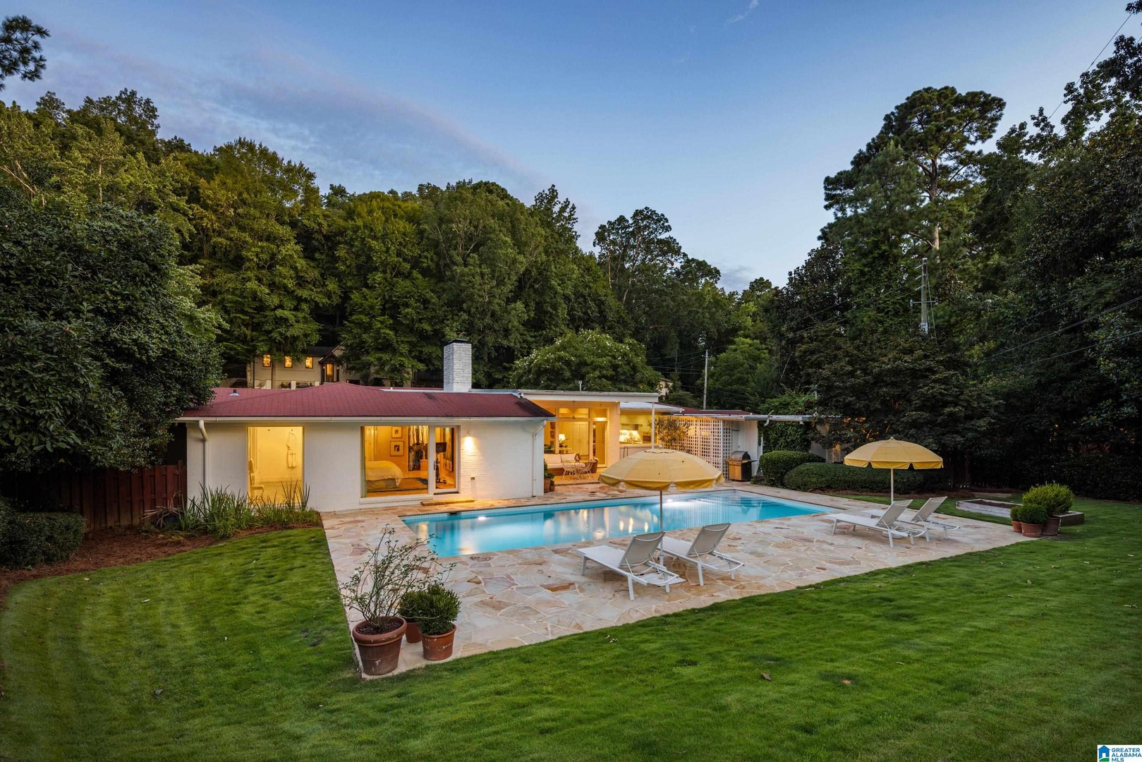Rare opportunity! Birmingham meets Palm Springs in this luxury, faithfully redone and fully upgraded midcentury modern home nestled in Crestline. Gut renovated in 2020 and subsequently featured in an interior design book written by the former editor of House Beautiful, the home sits on a large, extremely private lot and is one-level living at its finest. House boasts expansive floor-to-ceiling windows, with views of greenspace all around, an open-air loggia - great for al fresco entertaining - and a beautiful, gas-heated saltwater pool for lounging or laps. The home includes four bedrooms - with his and hers master closets - and three bathrooms with custom Italian terrazzo and marble throughout. A stunning orchard stone fireplace wall anchors the light-filled great room, with a gorgeous custom kitchen at one end. Only a three-minute walk to Mountain Brook Junior High and a ten minute walk to Crestline. This place is truly one-of-kind - come and see for yourself!