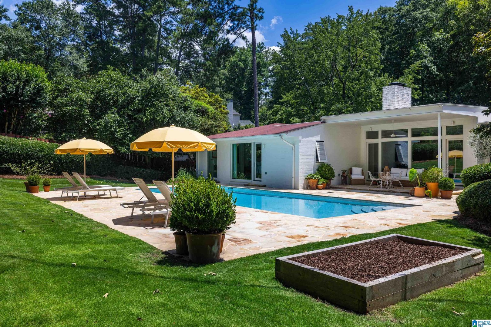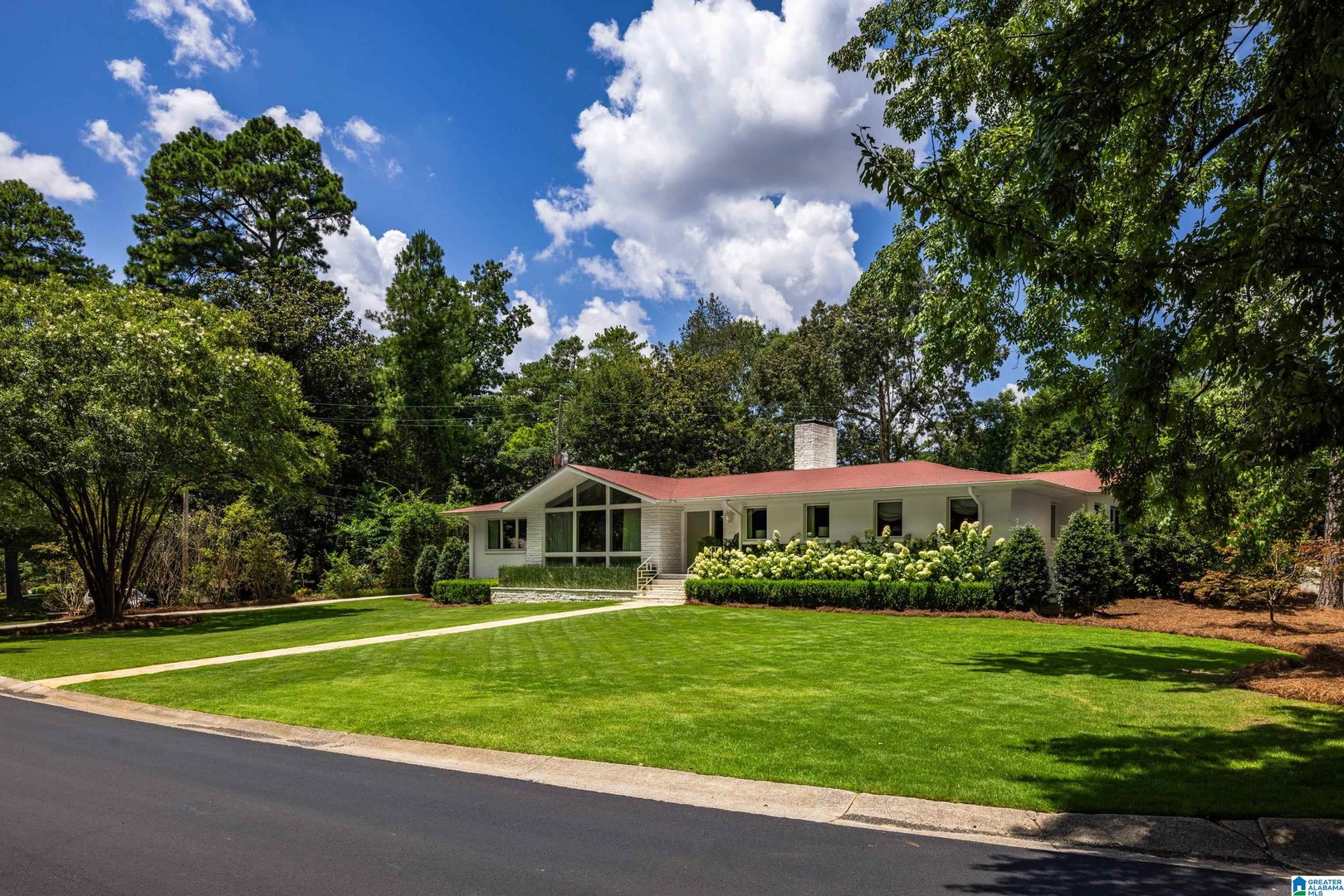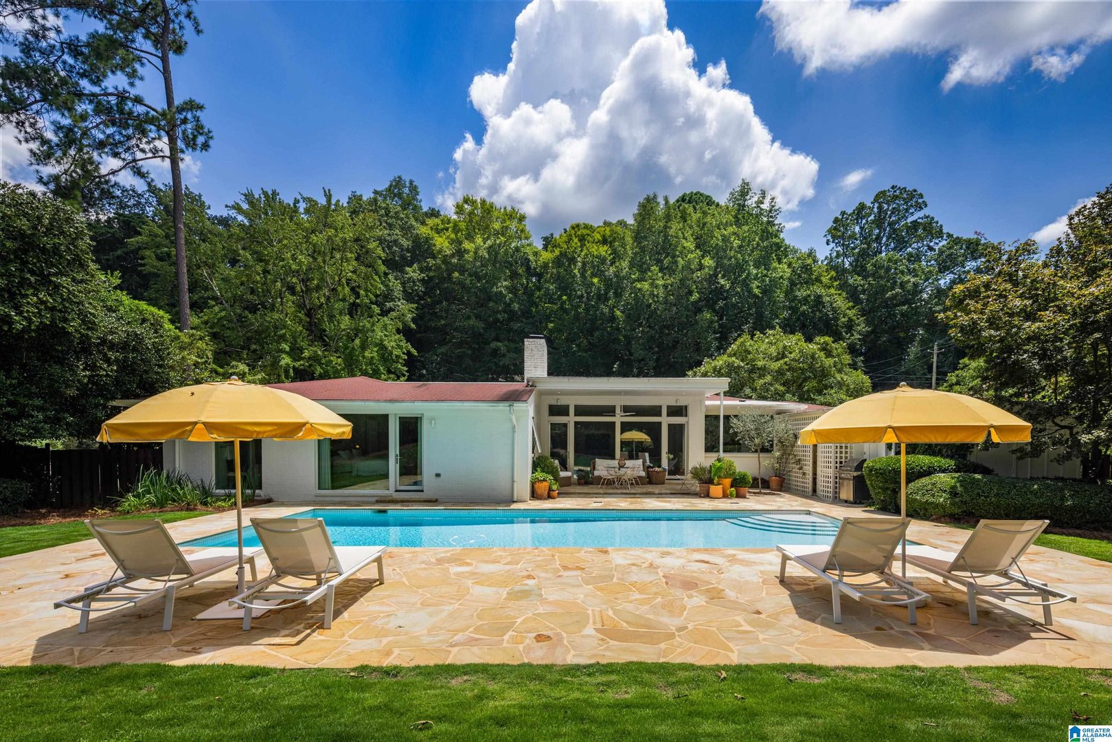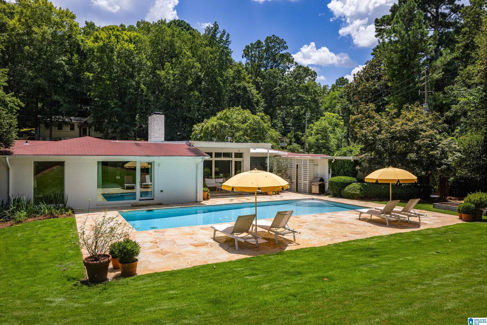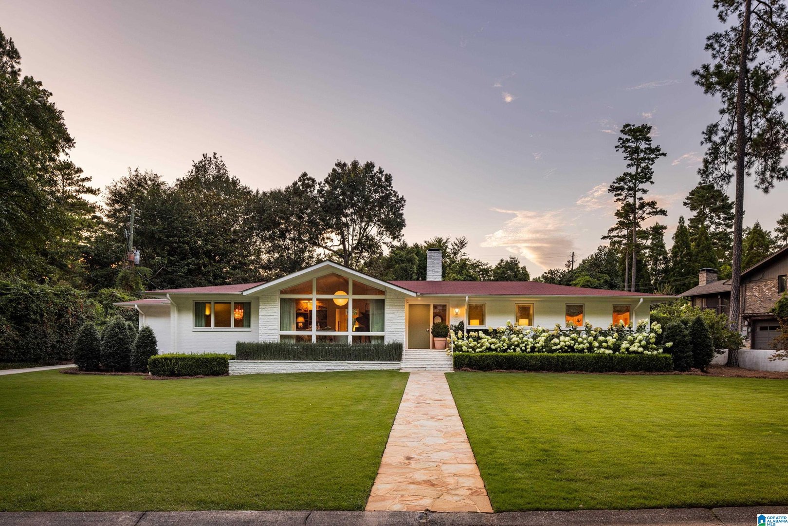 Rare opportunity! Birmingham meets Palm Springs in this luxury, faithfully redone and fully upgraded midcentury modern home nestled in Crestline. Gut renovated in 2020 and subsequently featured in an interior design book written by the former editor of House Beautiful, the home sits on a large, extremely private lot and is one-level living at its finest. House boasts expansive floor-to-ceiling windows, with views of greenspace all around, an open-air loggia - great for al fresco entertaining - and a beautiful, gas-heated saltwater pool for lounging or laps. The home includes four bedrooms - with his and hers master closets - and three bathrooms with custom Italian terrazzo and marble throughout. A stunning orchard stone fireplace wall anchors the light-filled great room, with a gorgeous custom kitchen at one end. Only a three-minute walk to Mountain Brook Junior High and a ten minute walk to Crestline. This place is truly one-of-kind - come and see for yourself!
