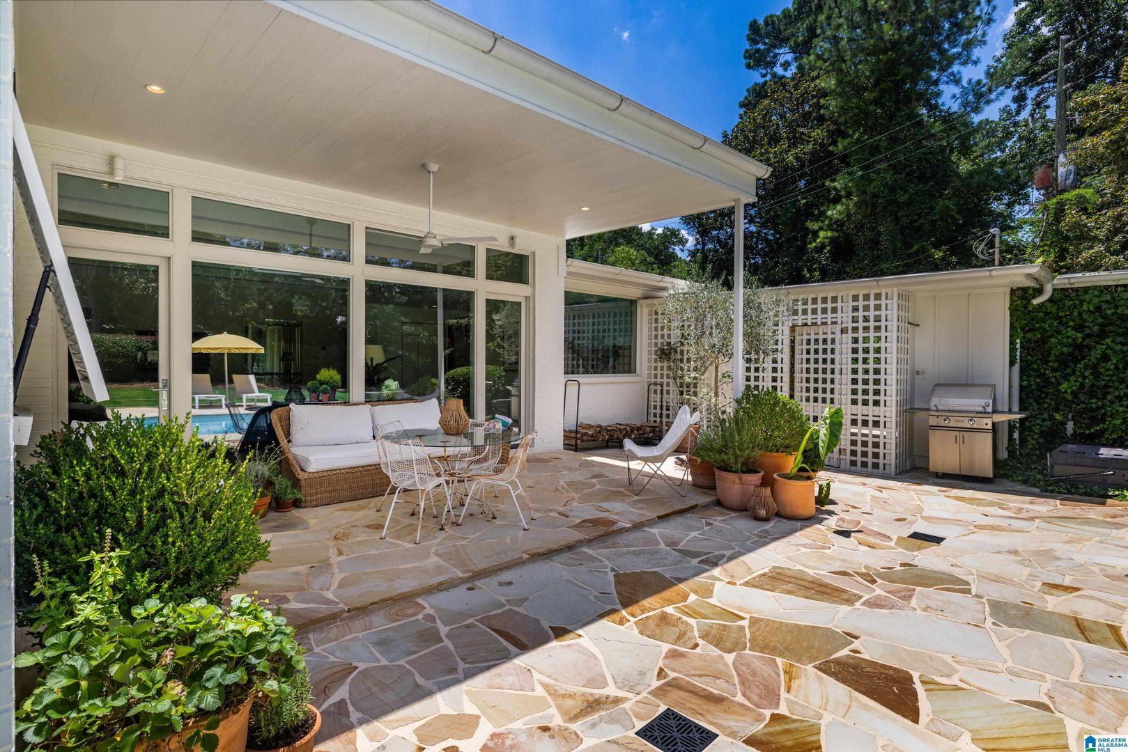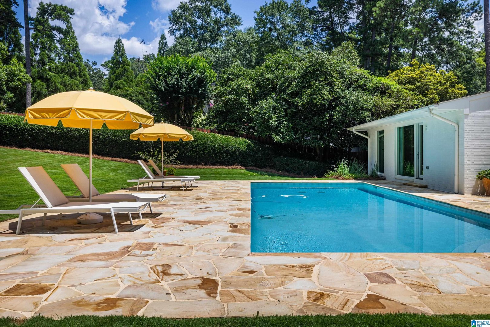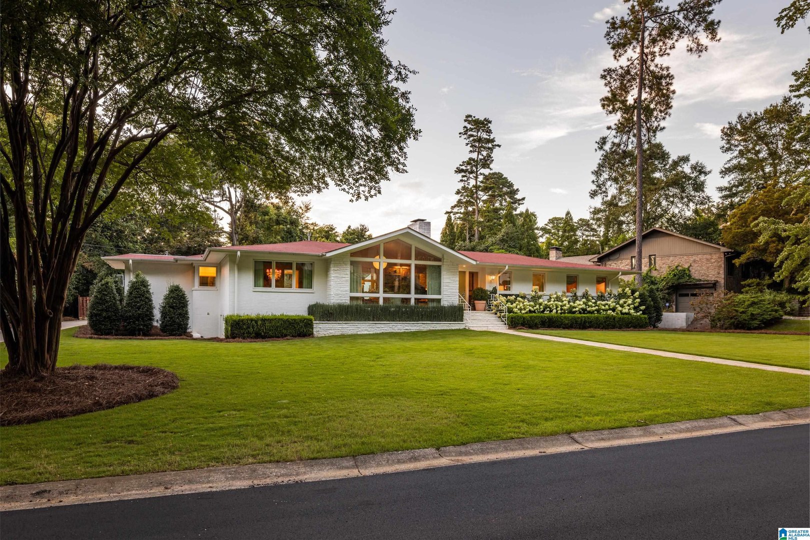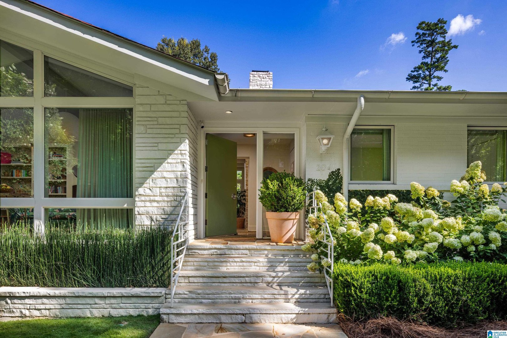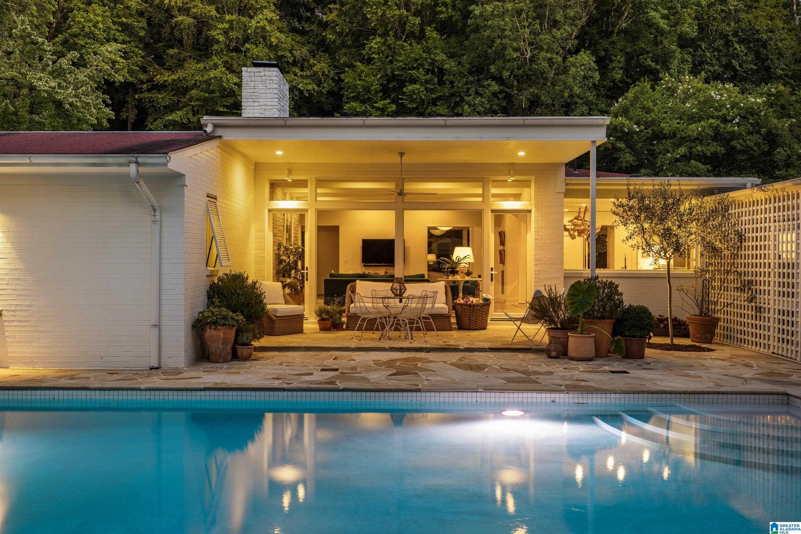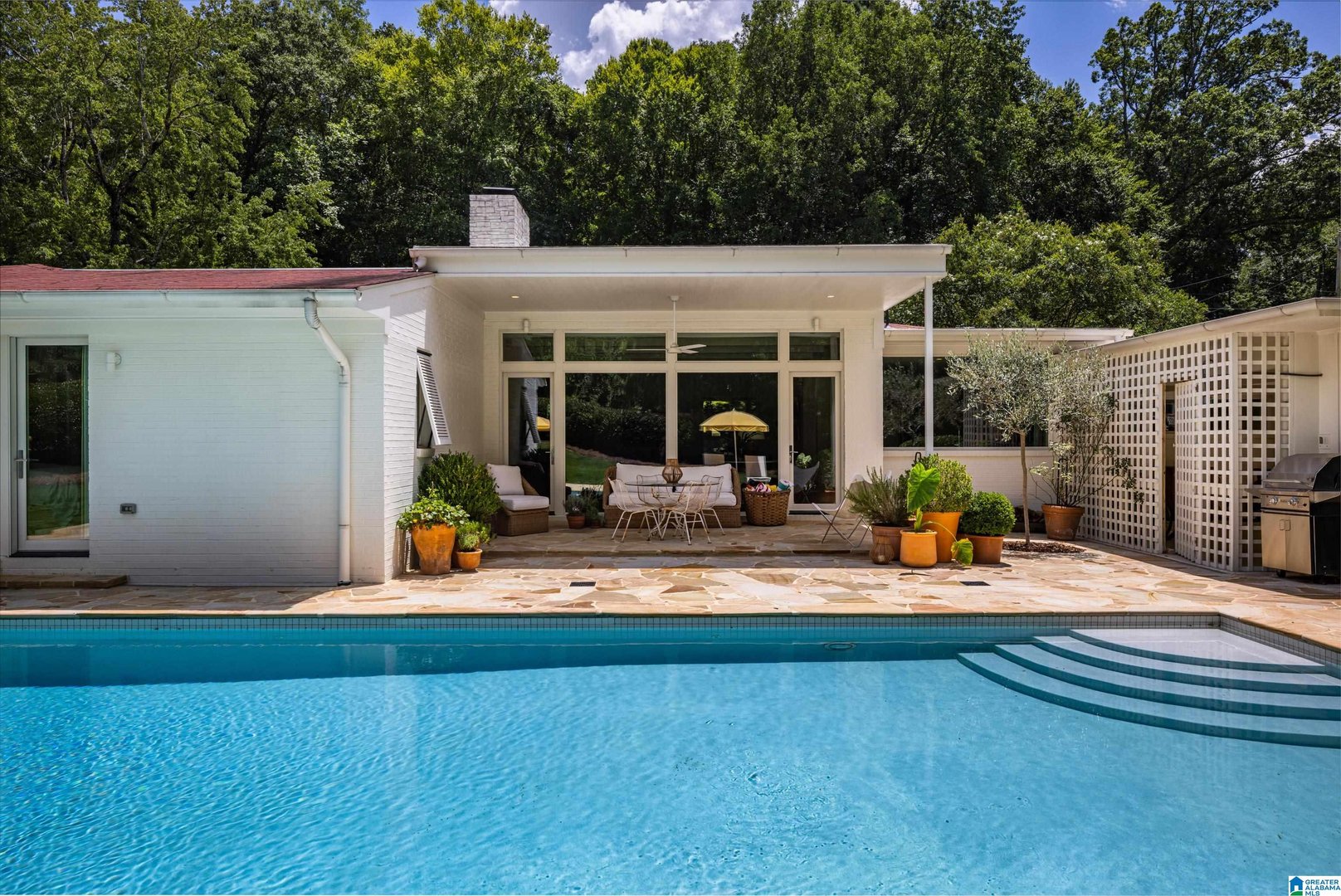 Rare opportunity! Birmingham meets Palm Springs in this luxury, faithfully redone and fully upgraded midcentury modern home nestled in Crestline. Gut renovated in 2020 and subsequently featured in an interior design book written by the former editor of House Beautiful, the home sits on a large, extremely private lot and is one-level living at its finest. House boasts expansive floor-to-ceiling windows, with views of greenspace all around, an open-air loggia - great for al fresco entertaining - and a beautiful, gas-heated saltwater pool for lounging or laps. The home includes four bedrooms - with his and hers master closets - and three bathrooms with custom Italian terrazzo and marble throughout. A stunning orchard stone fireplace wall anchors the light-filled great room, with a gorgeous custom kitchen at one end. Only a three-minute walk to Mountain Brook Junior High and a ten minute walk to Crestline. This place is truly one-of-kind - come and see for yourself!