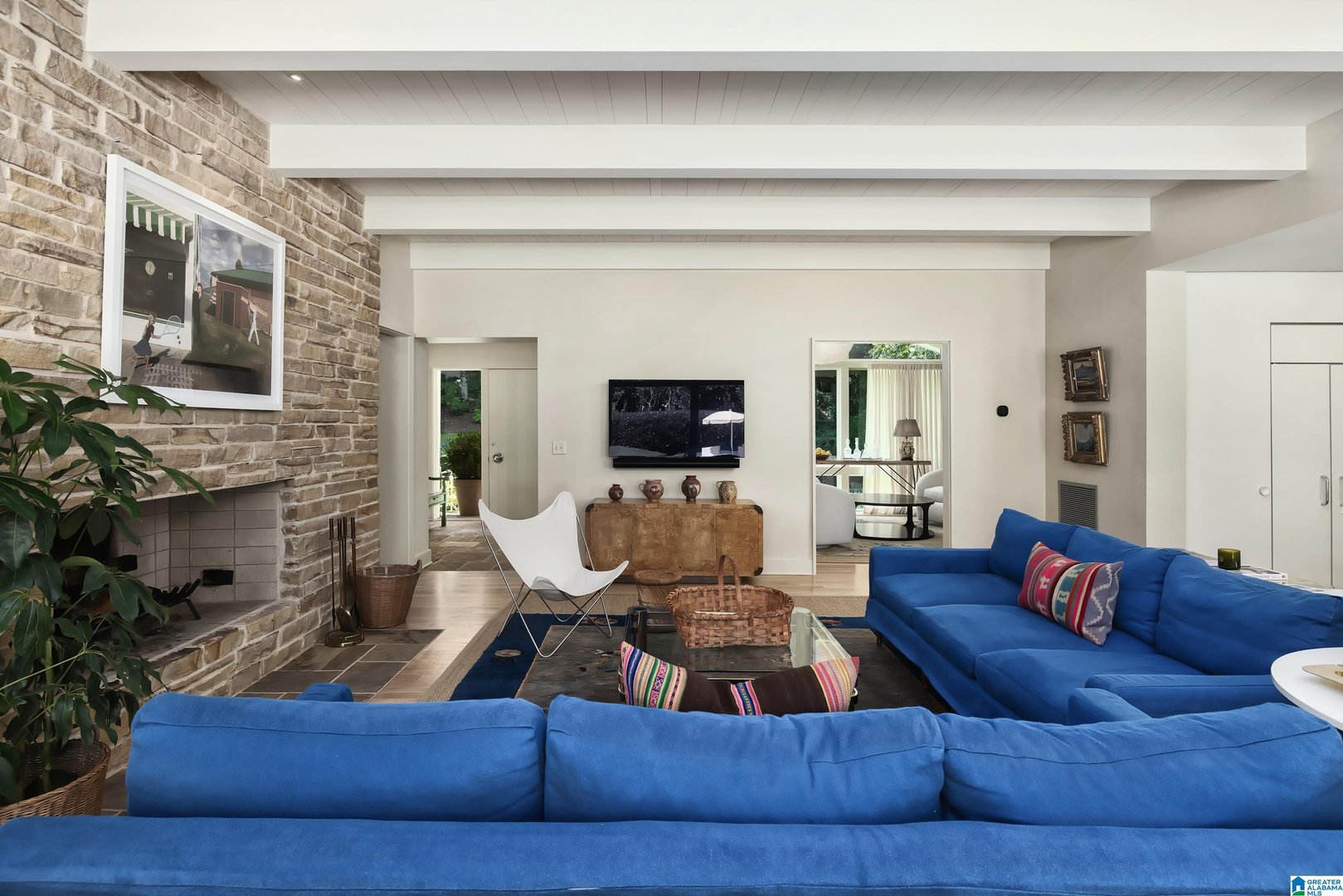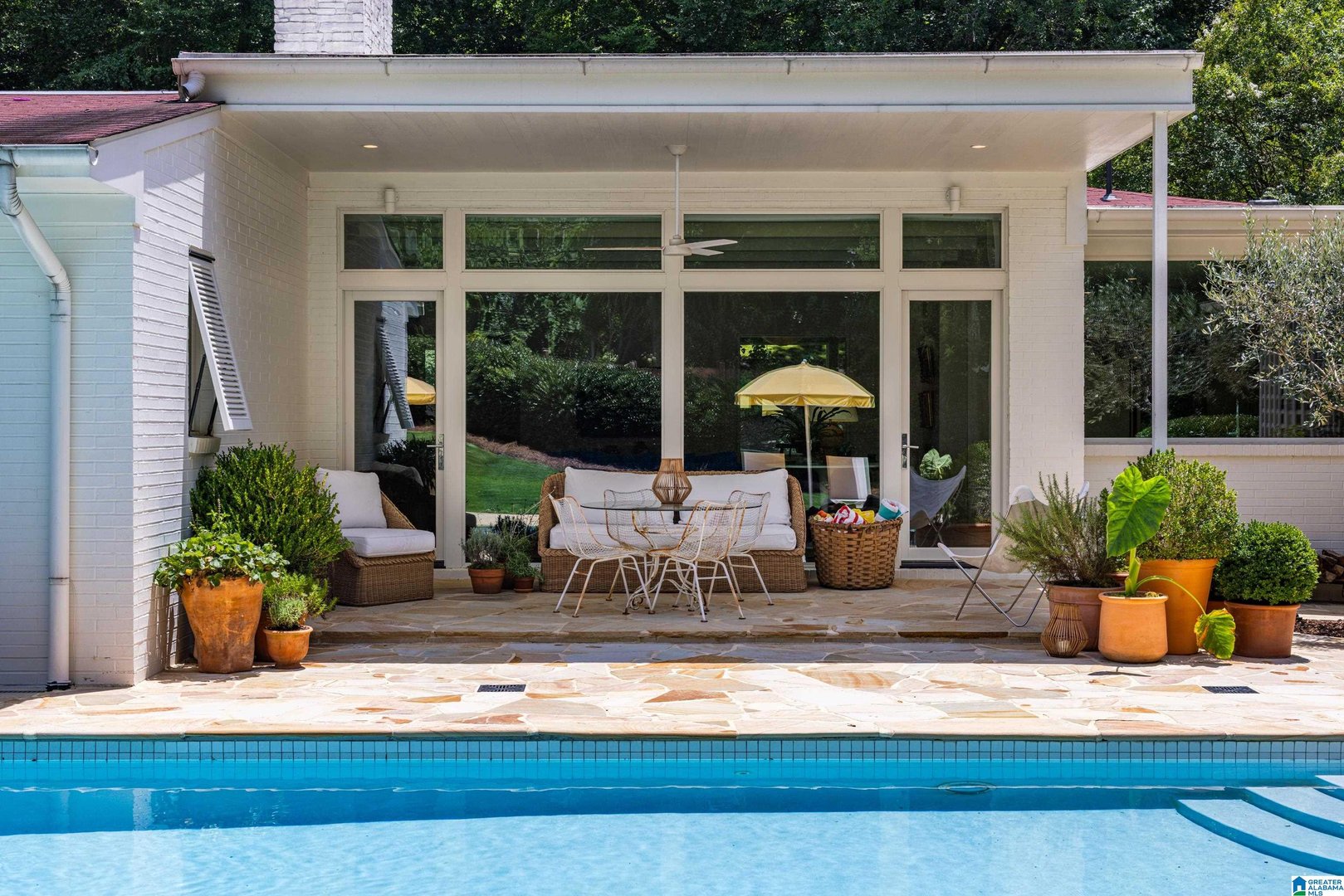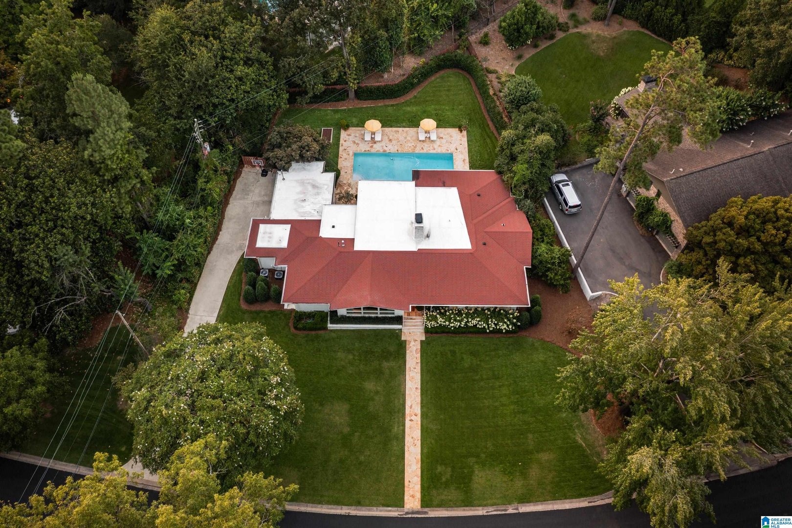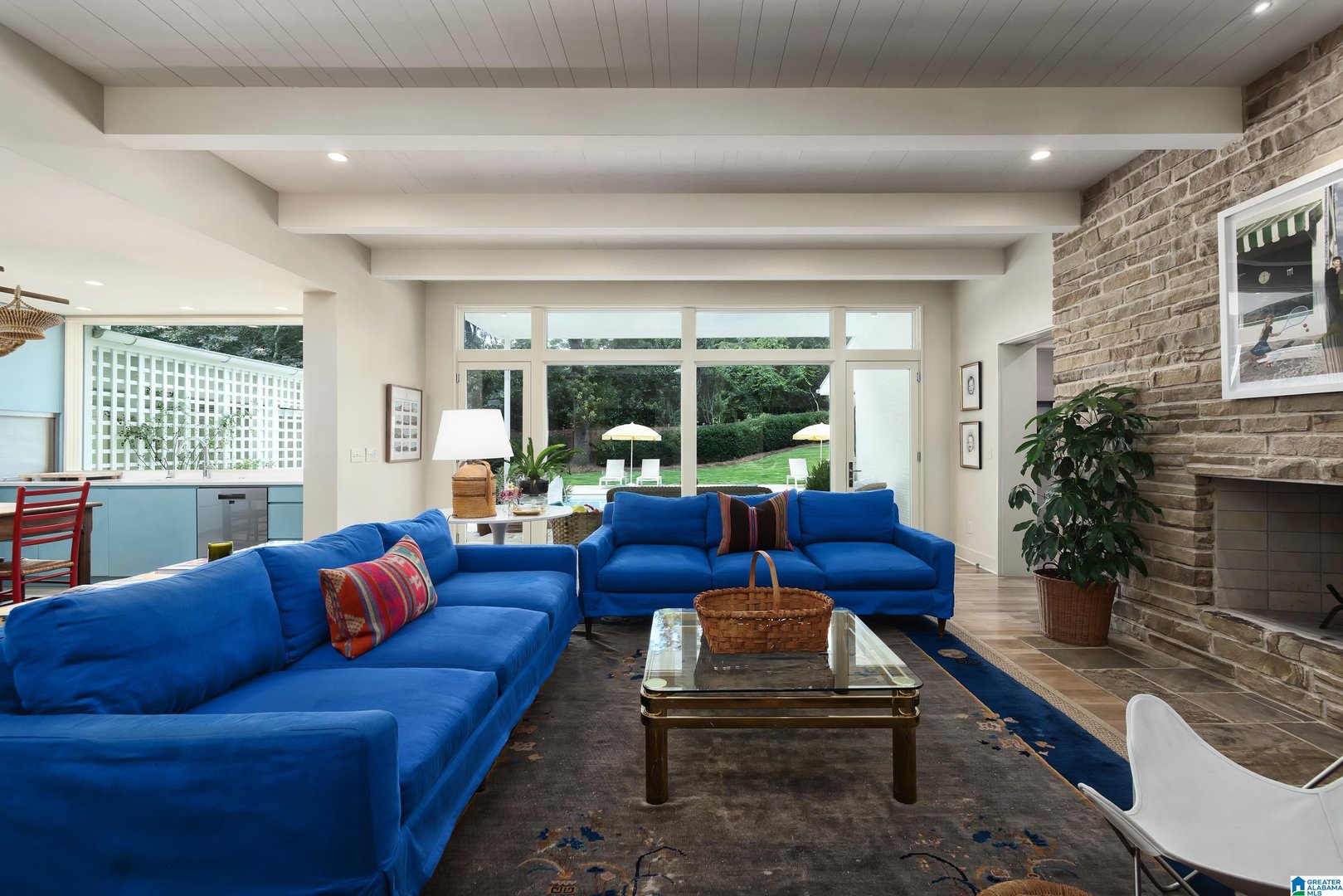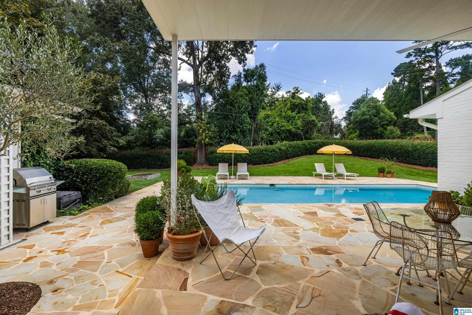 Rare opportunity! Birmingham meets Palm Springs in this luxury, faithfully redone and fully upgraded midcentury modern home nestled in Crestline. Gut renovated in 2020 and subsequently featured in an interior design book written by the former editor of House Beautiful, the home sits on a large, extremely private lot and is one-level living at its finest. House boasts expansive floor-to-ceiling windows, with views of greenspace all around, an open-air loggia - great for al fresco entertaining - and a beautiful, gas-heated saltwater pool for lounging or laps. The home includes four bedrooms - with his and hers master closets - and three bathrooms with custom Italian terrazzo and marble throughout. A stunning orchard stone fireplace wall anchors the light-filled great room, with a gorgeous custom kitchen at one end. Only a three-minute walk to Mountain Brook Junior High and a ten minute walk to Crestline. This place is truly one-of-kind - come and see for yourself!