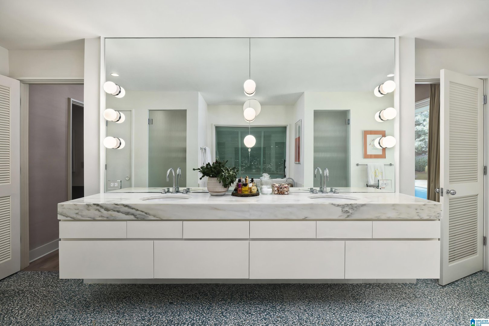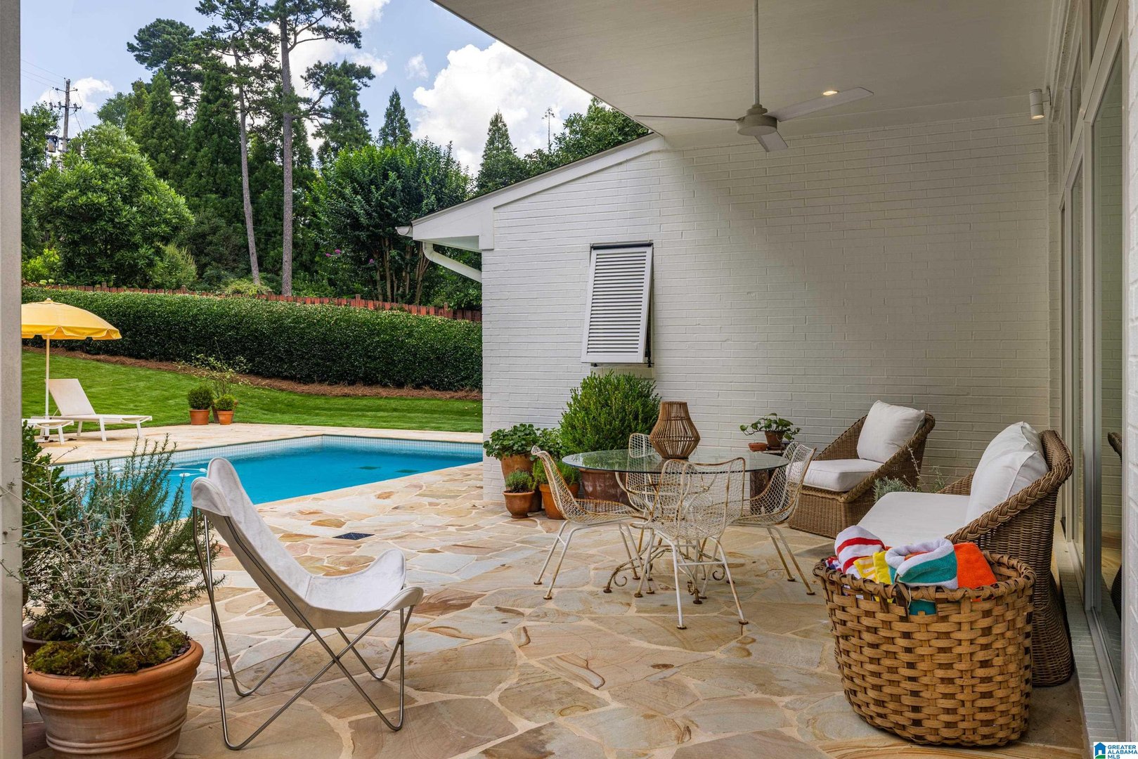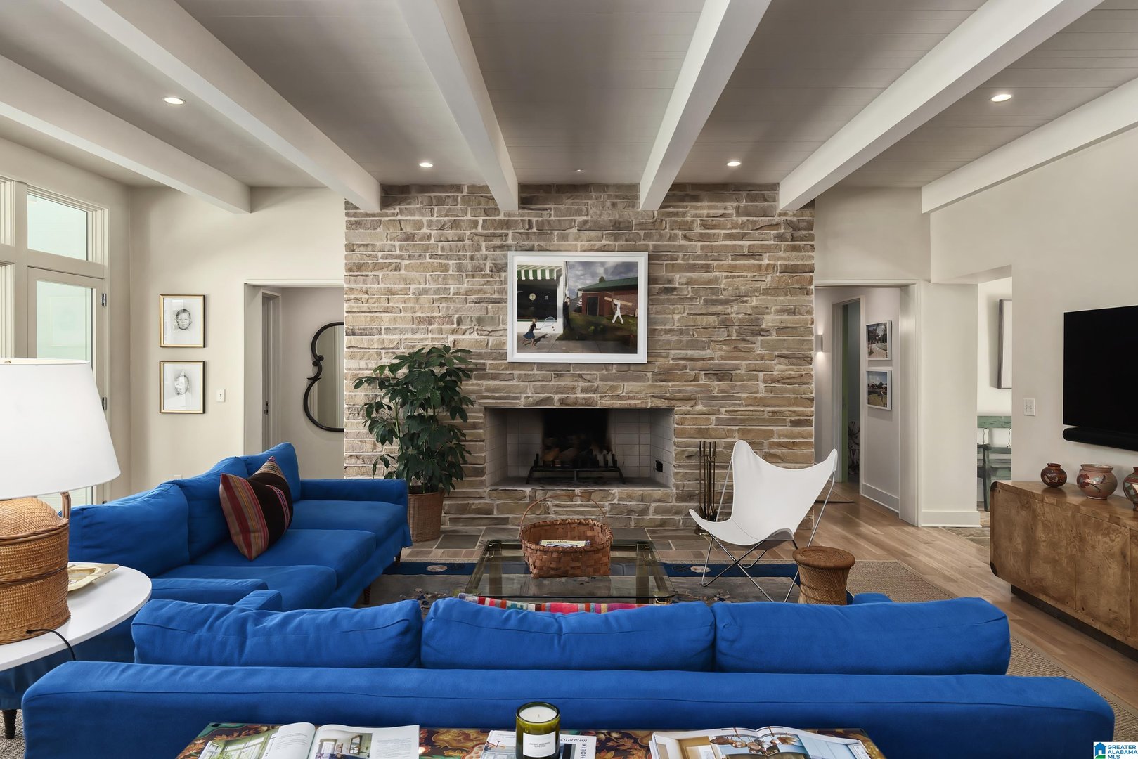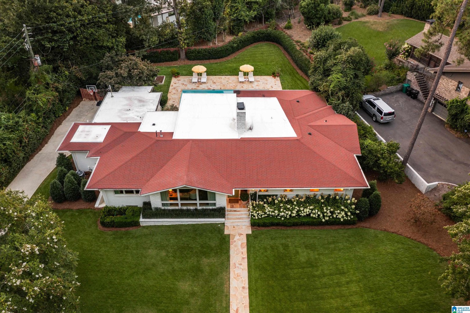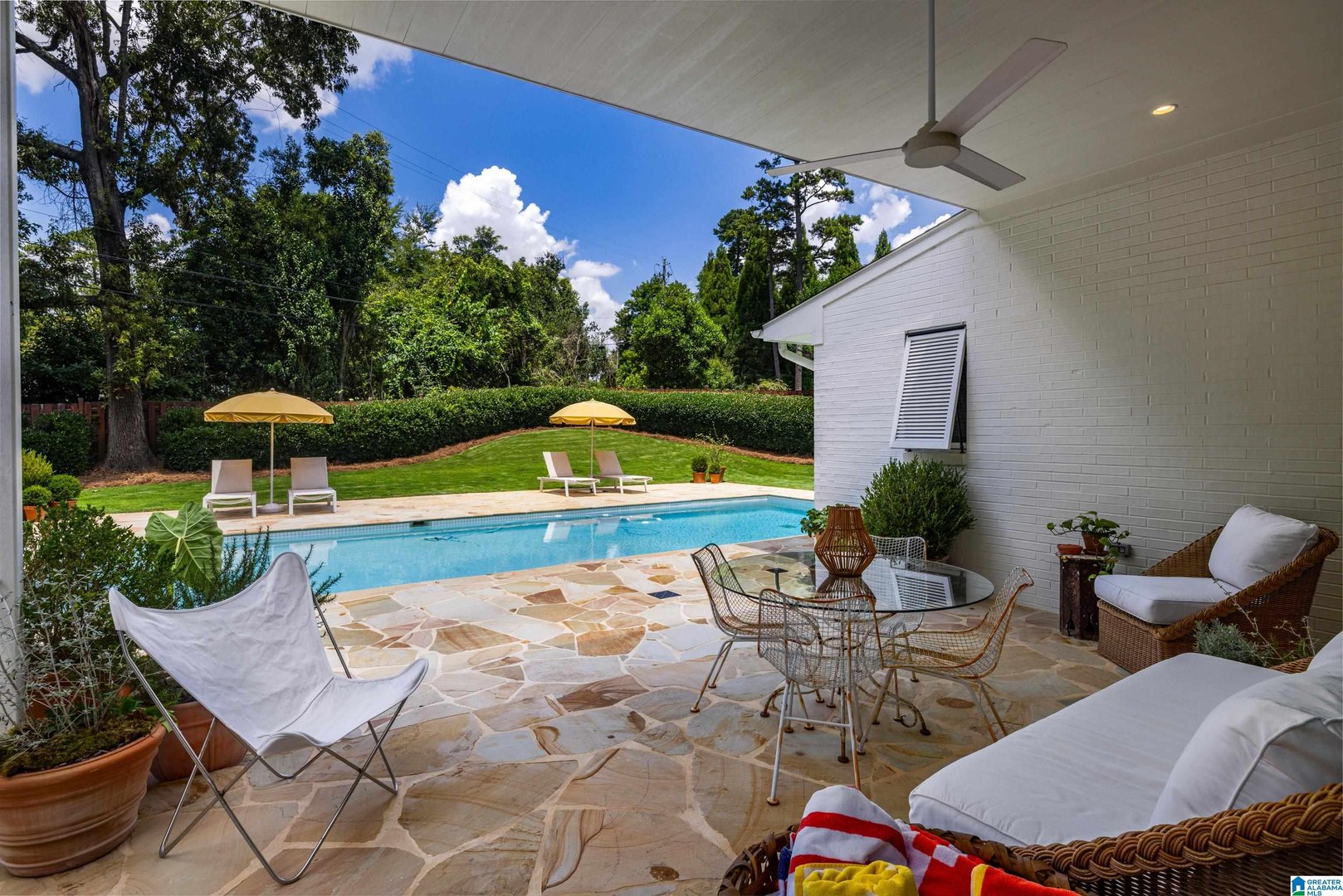 Rare opportunity! Birmingham meets Palm Springs in this luxury, faithfully redone and fully upgraded midcentury modern home nestled in Crestline. Gut renovated in 2020 and subsequently featured in an interior design book written by the former editor of House Beautiful, the home sits on a large, extremely private lot and is one-level living at its finest. House boasts expansive floor-to-ceiling windows, with views of greenspace all around, an open-air loggia - great for al fresco entertaining - and a beautiful, gas-heated saltwater pool for lounging or laps. The home includes four bedrooms - with his and hers master closets - and three bathrooms with custom Italian terrazzo and marble throughout. A stunning orchard stone fireplace wall anchors the light-filled great room, with a gorgeous custom kitchen at one end. Only a three-minute walk to Mountain Brook Junior High and a ten minute walk to Crestline. This place is truly one-of-kind - come and see for yourself!
