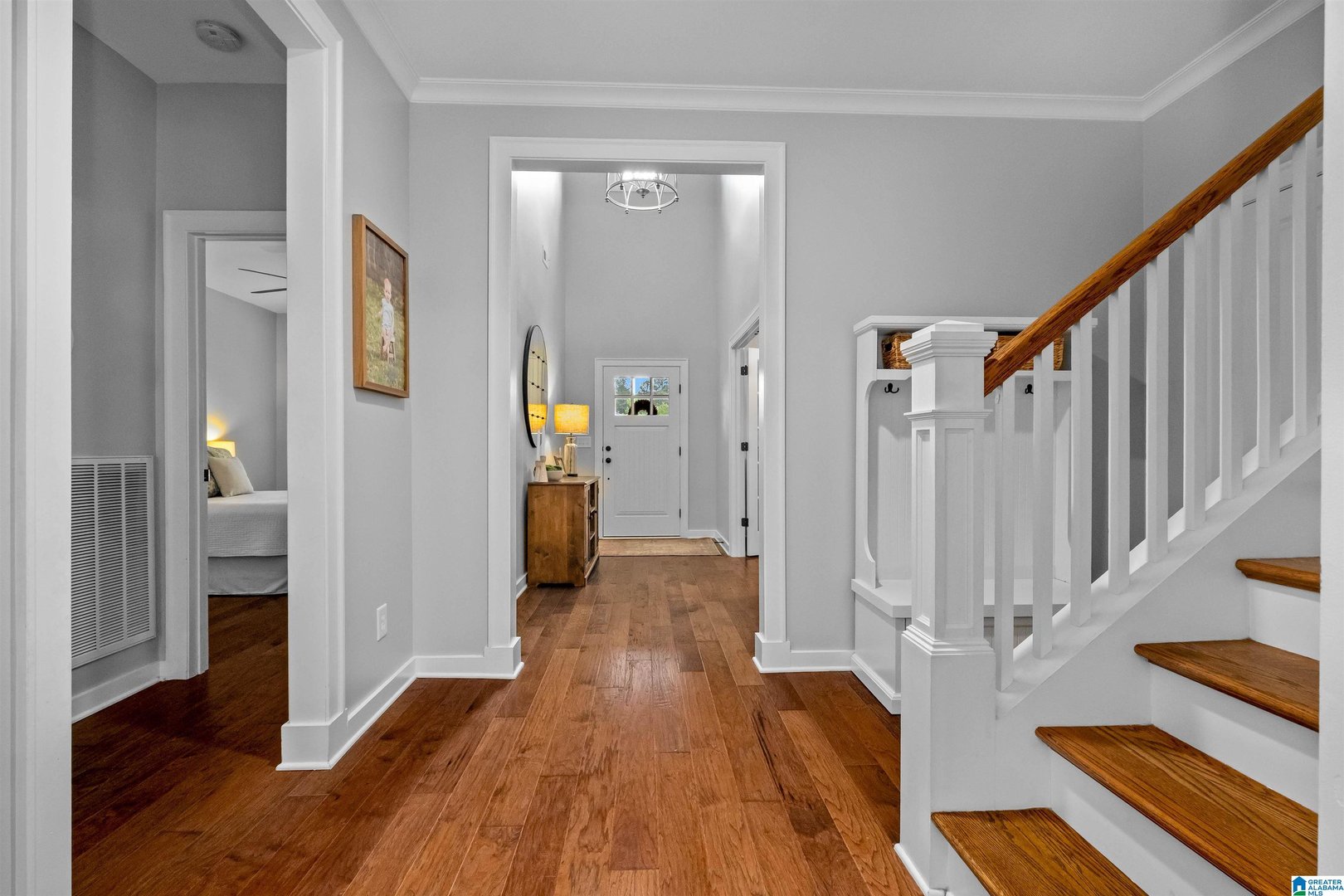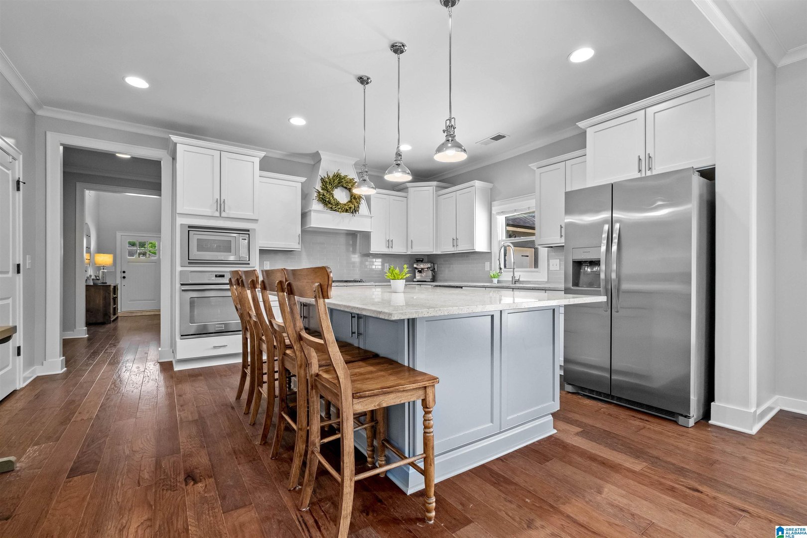 This stunning five-bedroom home has everything you've been dreaming of—and more! Step inside to find gleaming hardwood floors, a spacious home office, and a chef’s kitchen featuring a large stone island and stainless steel appliances. The soaring two-story family room is flooded with natural light, creating an inviting space for everyday living and entertaining. With two bedrooms on the main level, including the primary suite, this layout offers ultimate convenience. Upstairs you'll find a generous loft-style living area, three additional bedrooms, and two full baths. Enjoy outdoor living with both front and rear porches, a private, fenced backyard, and beautifully landscaped grounds. The charming portico and courtyard entry lead to a rare three-car main level garage. Located in one of Liberty Park’s most vibrant neighborhoods, you’ll love the community park, playground, and peaceful lake perfect for fishing. All just minutes from award-winning Vestavia Hills schools!!